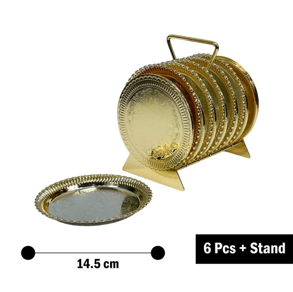 طقم صحون ضيافة ستانلس ستيل مع ستاند 7 قطع