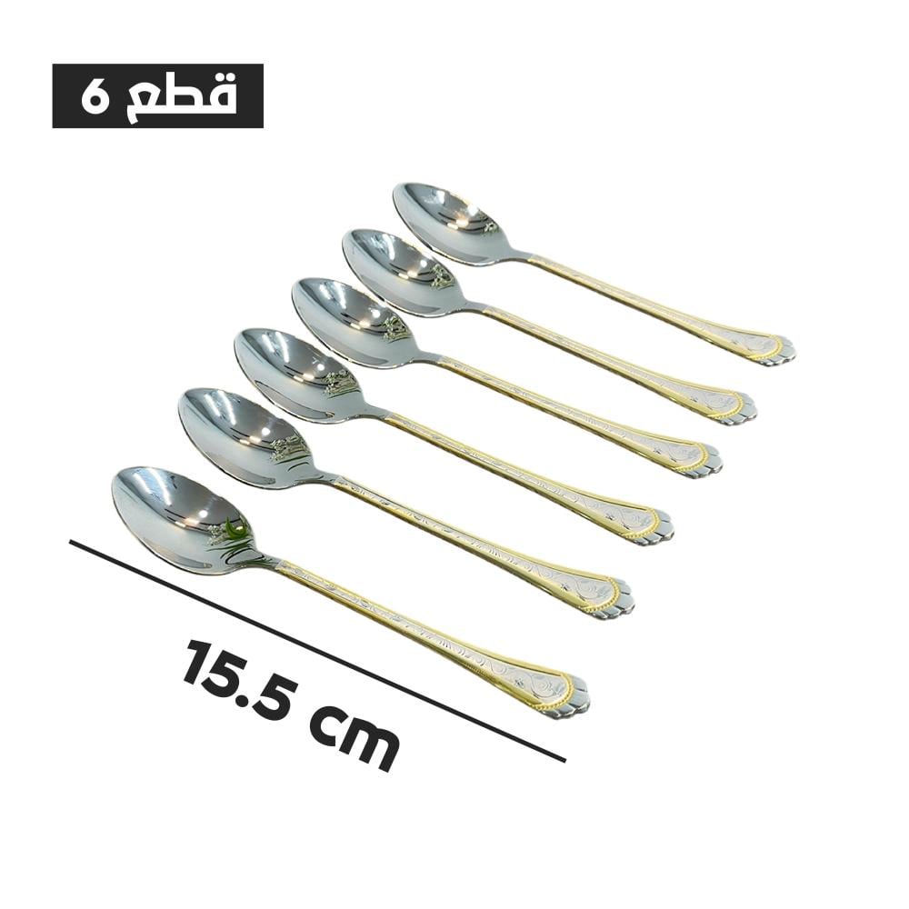 طقم ملاعق حلا حفر ليزر ذهبي فضي 6 قطع