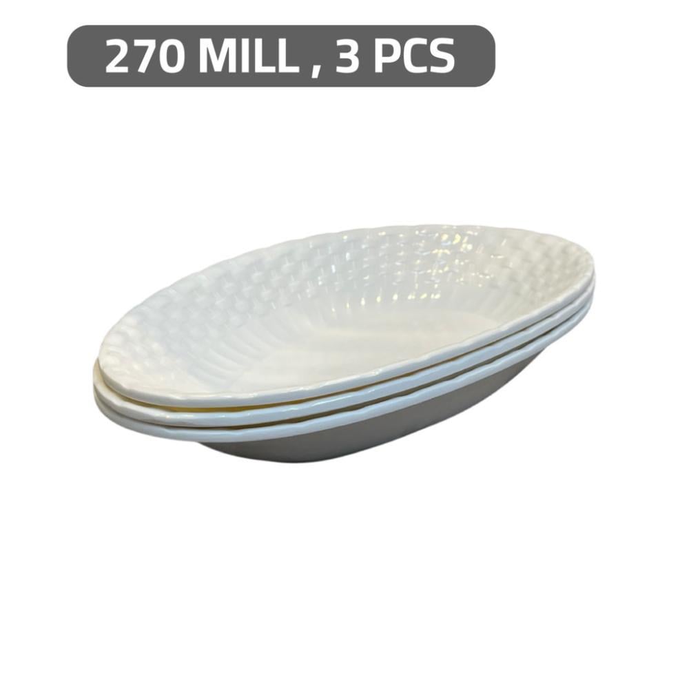 صحن بيضاوي ميلامين ابيض نقشة خوص