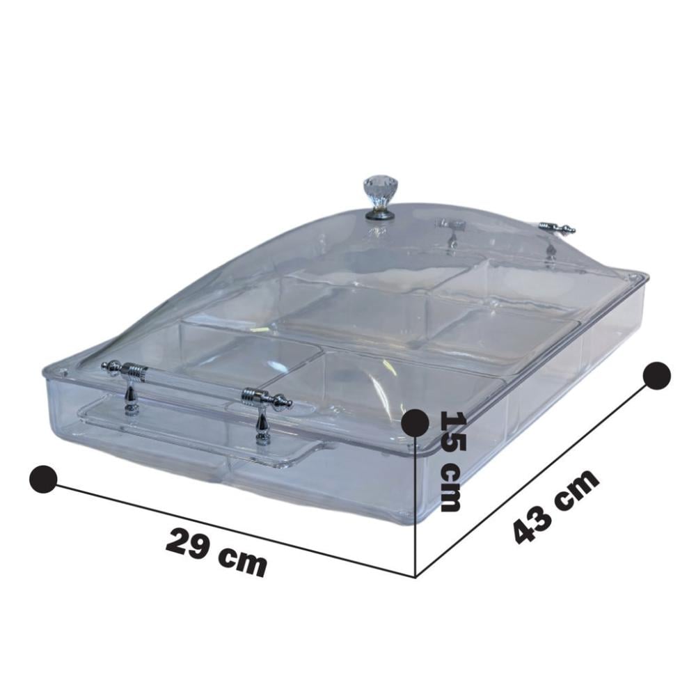 اجعل تقديم المقبلات والوجبات الخفيفة أكثر تنظيمًا وأناقة مع صحن الأكريلك المقسم، المصمم لتسهيل التقديم وحفظ الطعام بطريقة عملية وجذابة.