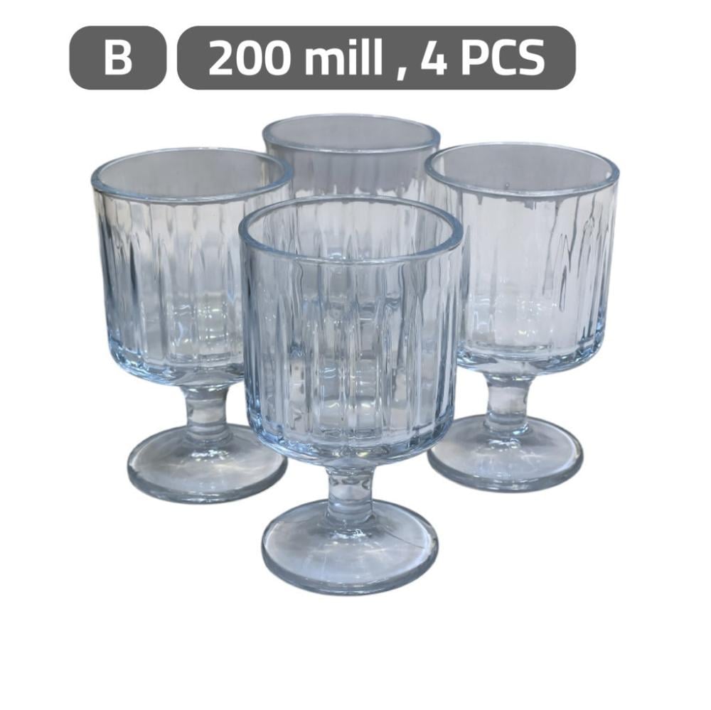 - كاسات زجاجية 4 قطع بتصميم متين وفاخر