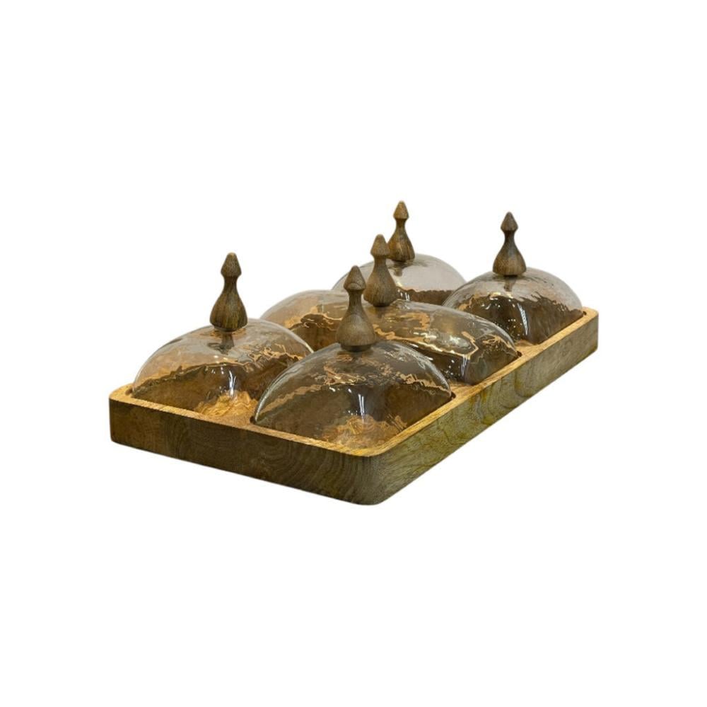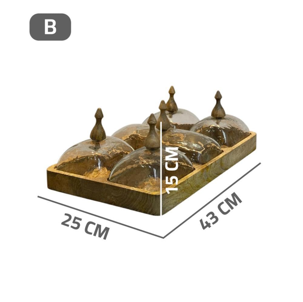طقم تمرية خشب خماسي مع أغطية زجاج