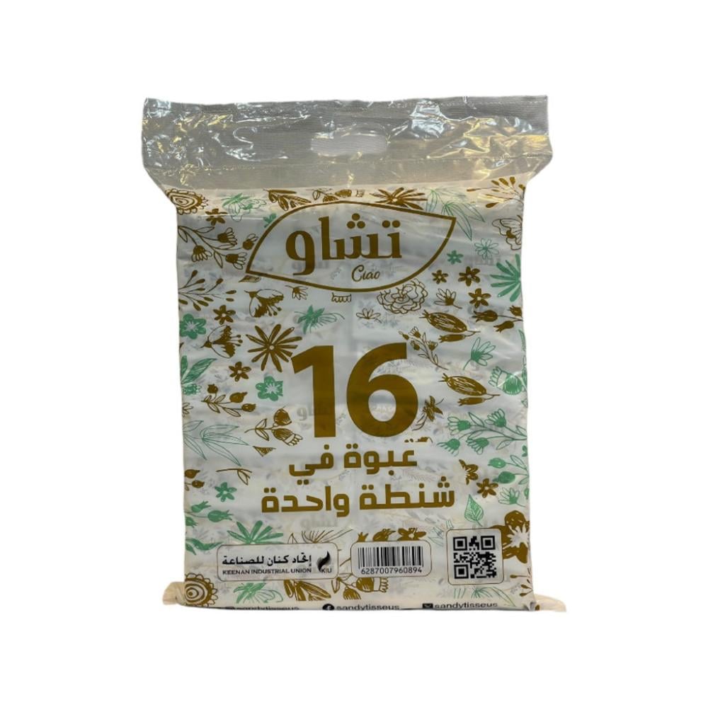 استمتع بالعناية الشخصية بأعلى مستوى مع منديل تشاو 16 عبوة الذي يوفر لك نعومة وامتصاصًا فعالًا. تصميمه العملي يجعله الخيار المثالي للاستخدام اليومي في المنزل أو أثناء التنقل.