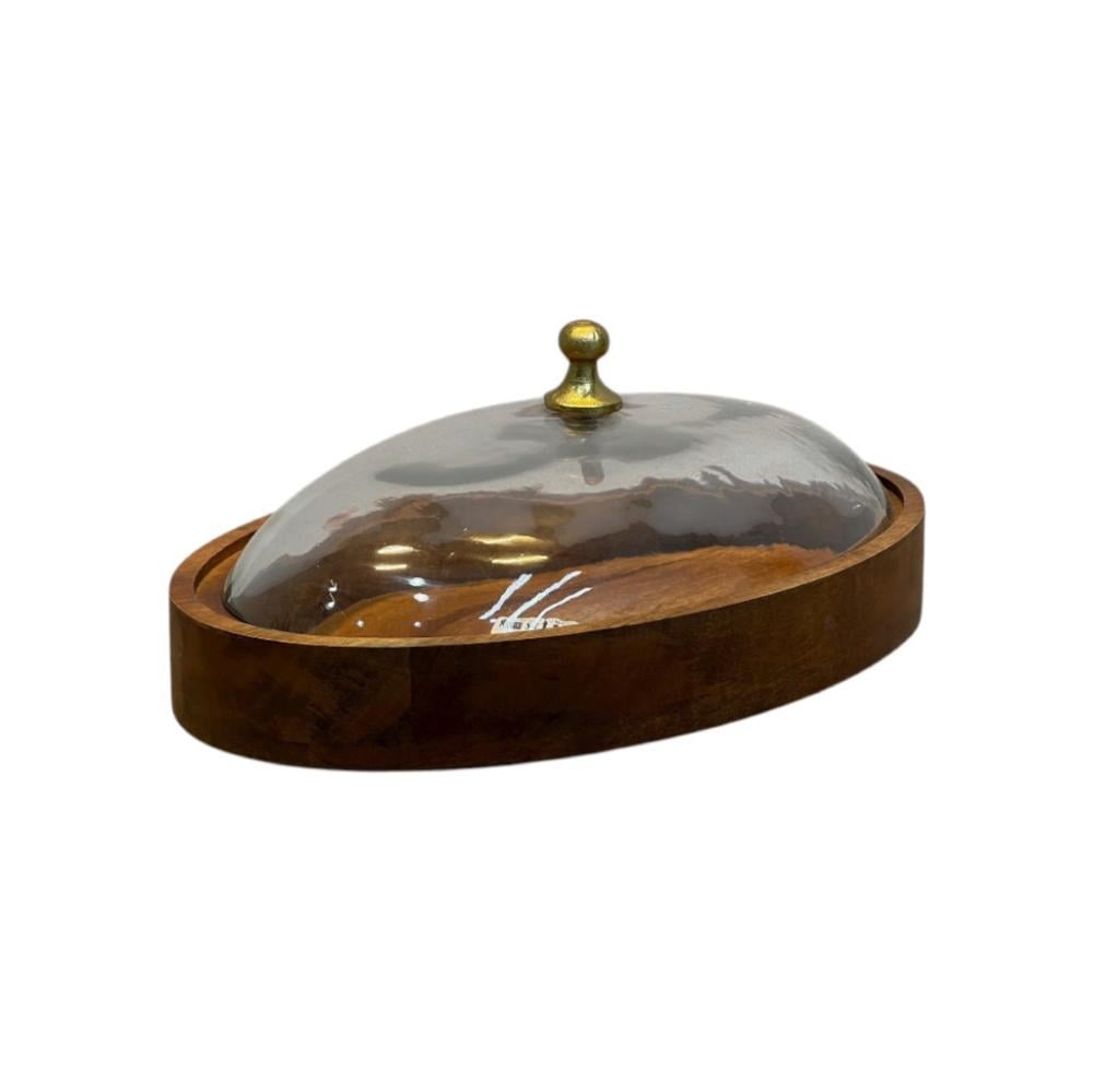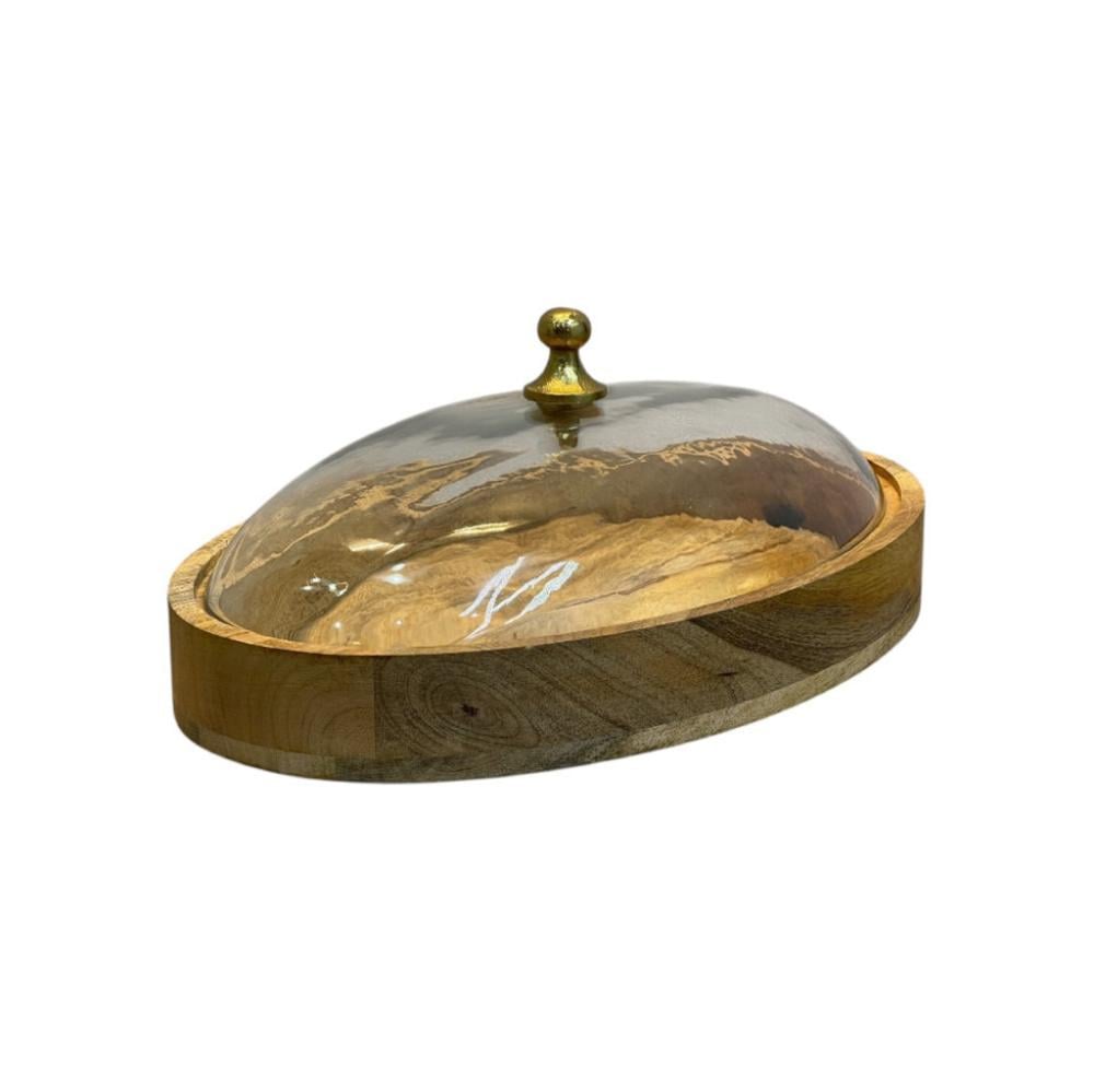 تمرية خشب غطاء زجاجي بيضاوي