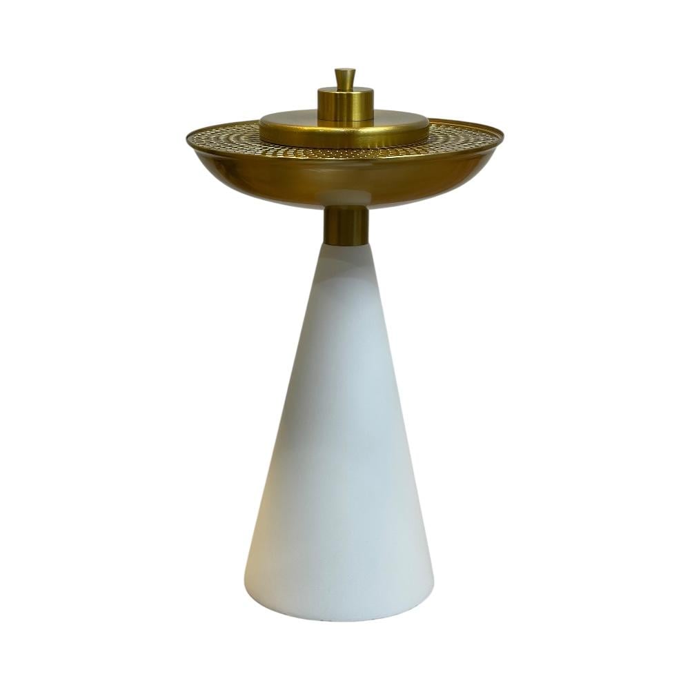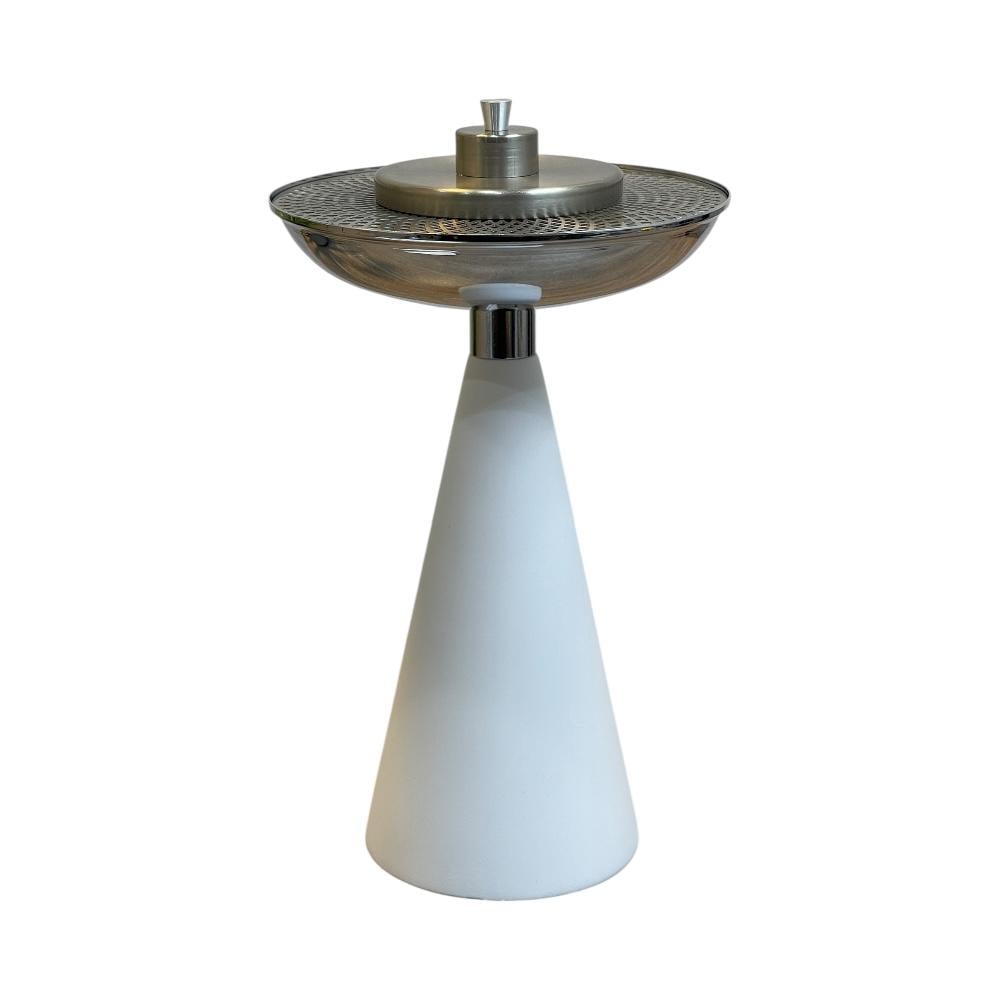 - التصميم: قاعدة مخروطية الشكل توفر استقرارًا متكاملًا، مع وعاء معدني ذهبي يناسب وضع الفحم أو العود.