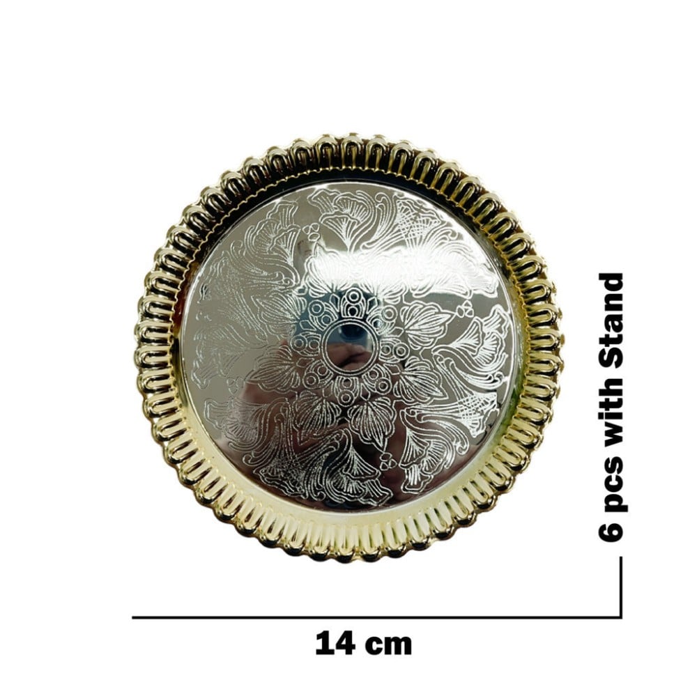 طقم صحون ضيافة ستانلس ستيل مع ستاند 7 قطع