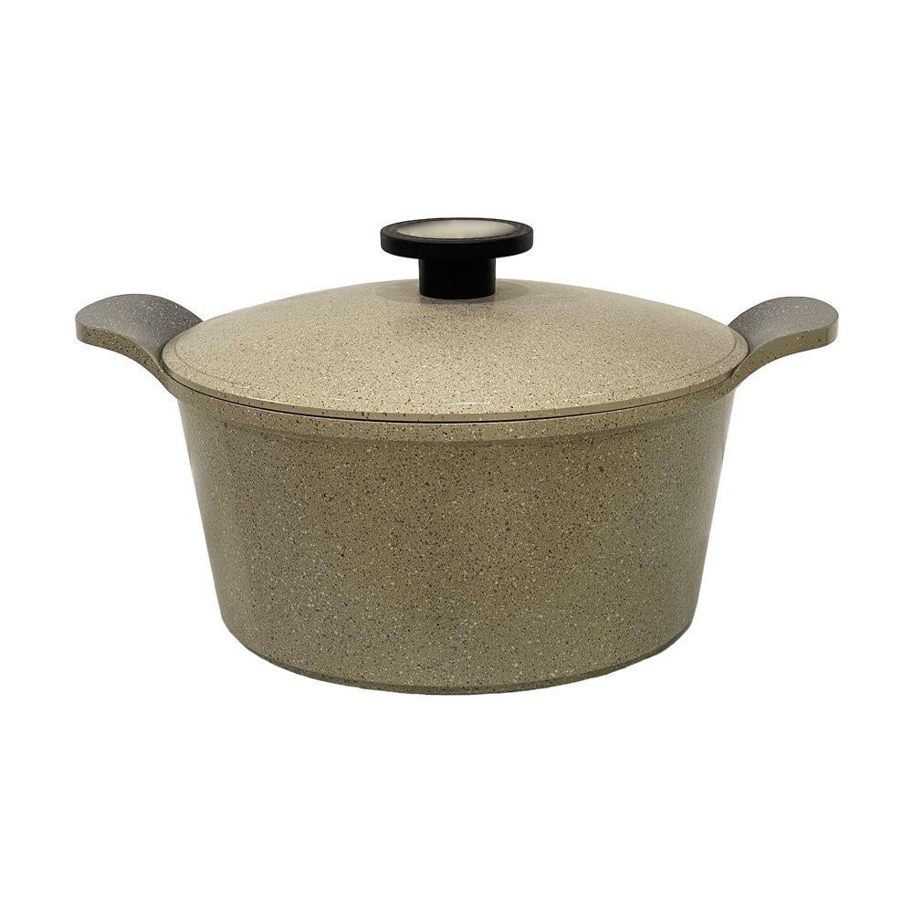 يتميز قدر الطهي هذا بتصميمه الأنيق المصنوع من الجرانيت باللون البيج الرملي، مما يضفي لمسة من الجمال والرقي على مطبخك. يتناغم لونه المحايد مع أي ديكور للمطبخ، مما يجعله إضافة مثالية لأي منزل.