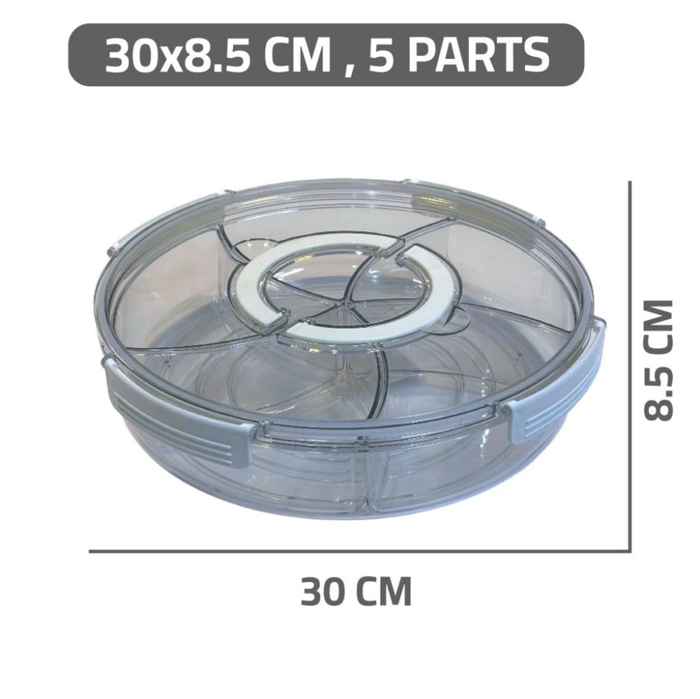 قدّم وجباتك بطريقة مرتبة وأنيقة مع صحن مقسم بغطاء دائري 5 أقسام. تصميمه العملي يساعد على تنظيم الطعام بشكل جميل، مع غطاء محكم يحافظ على الأطعمة طازجة لفترات أطول.