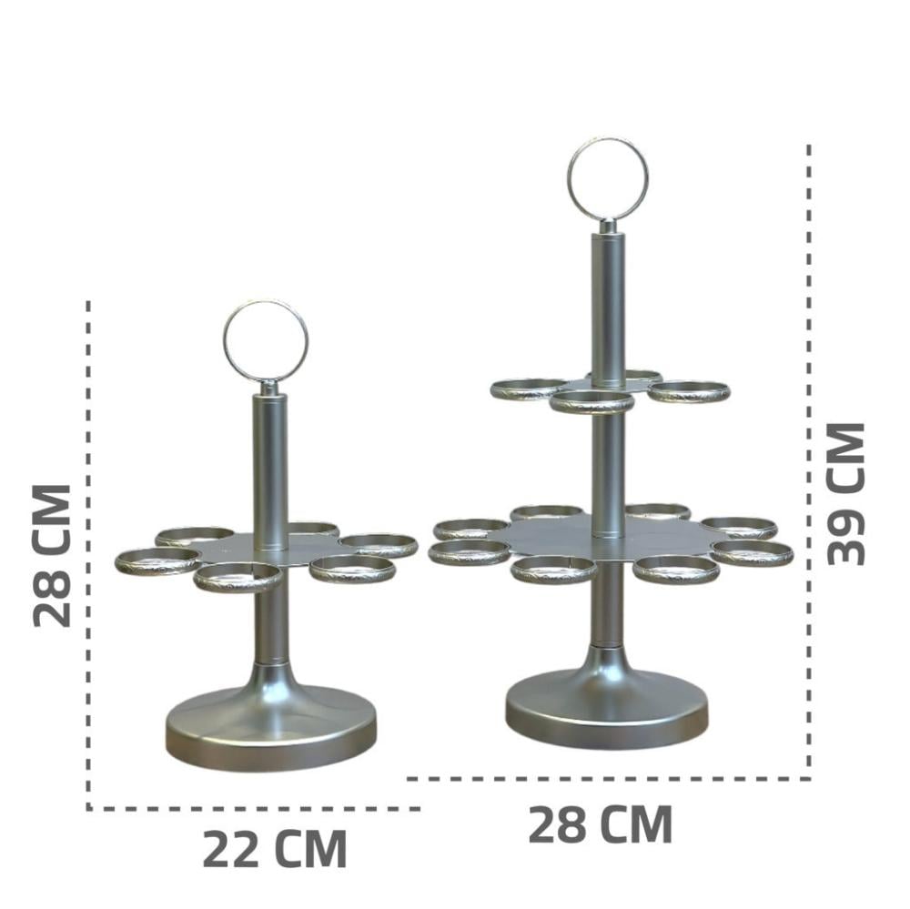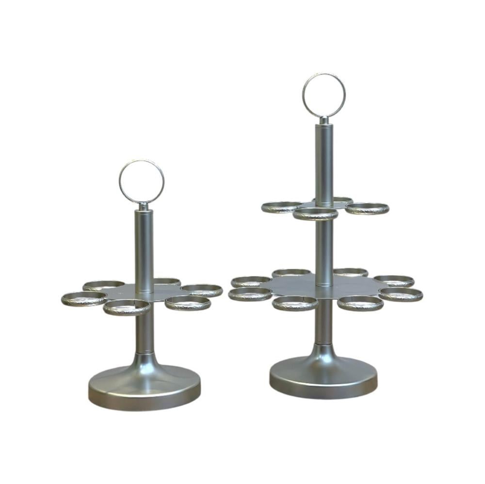 نسّقي حامل فناجين قهوة فضي مع صواني تقديم فضية أو أطقم فناجين فاخرة لتعزيز جمال المائدة وإبراز فخامتها.