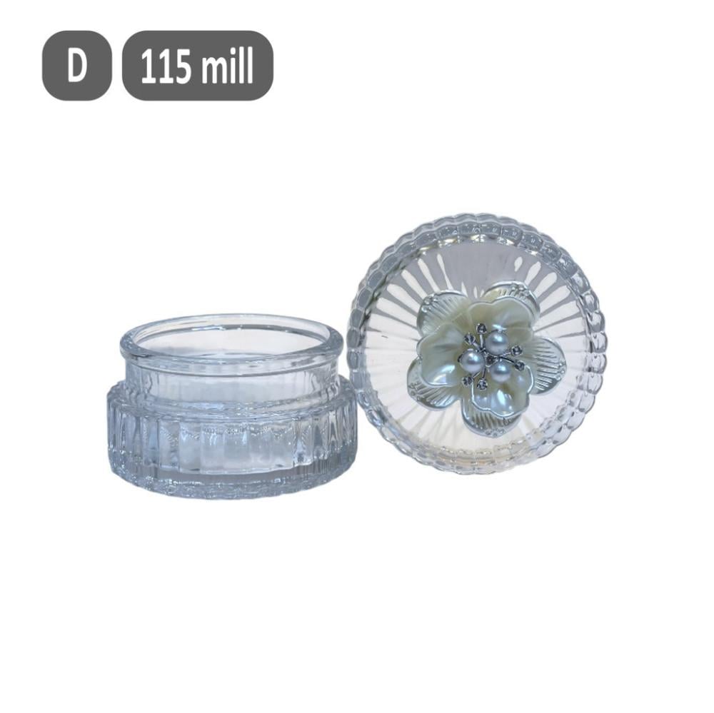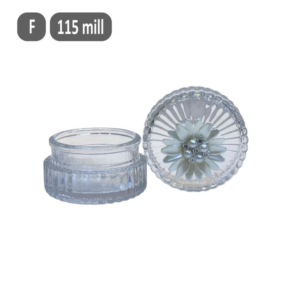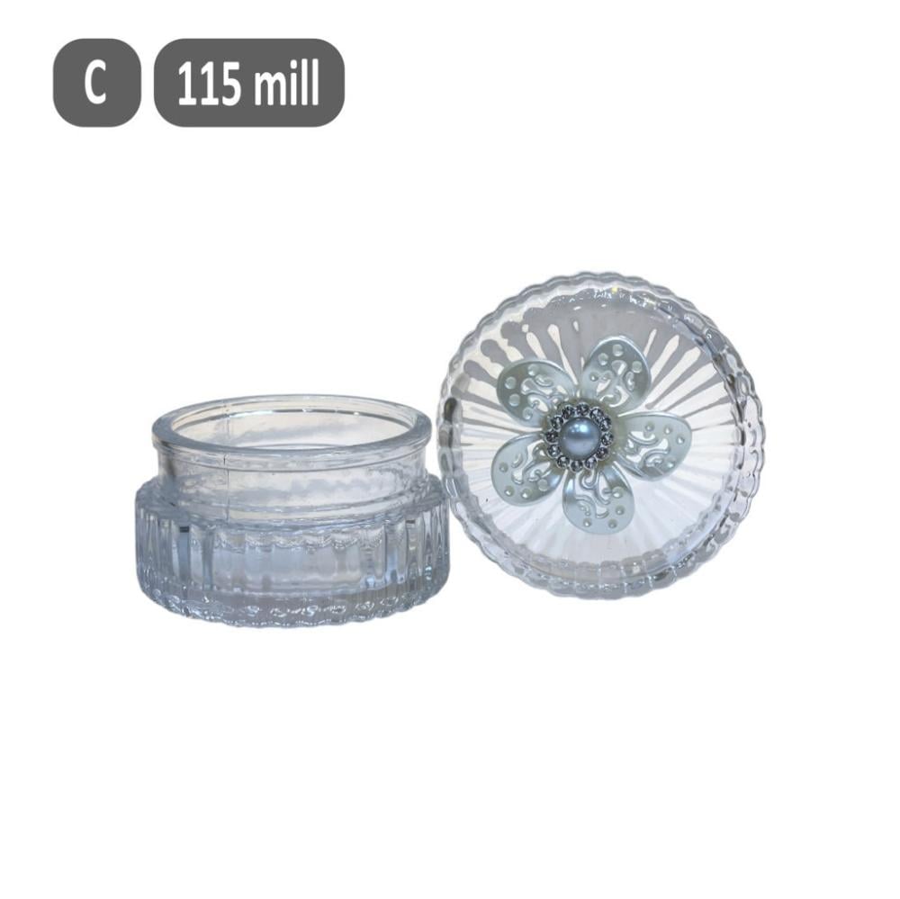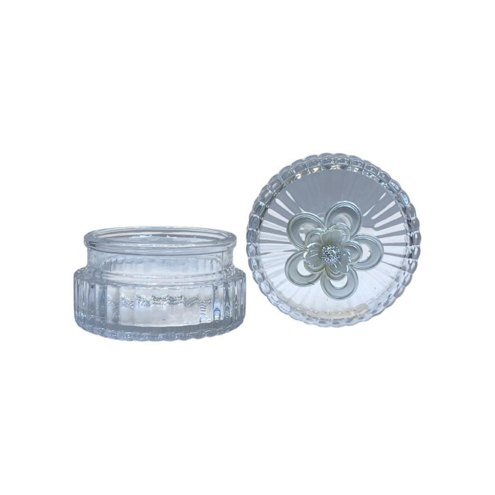 - مصنوعة من زجاج متين شفاف يُبرز ما بداخلها بوضوح مع وردة لؤلؤية على الغطاء