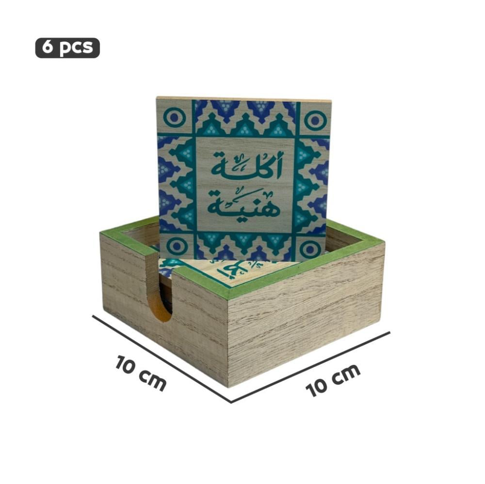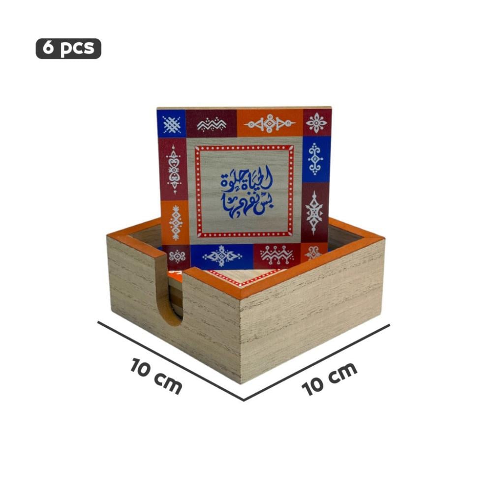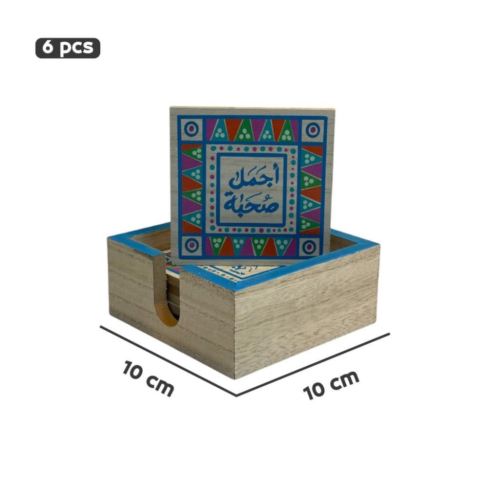- التصميم: كوستر خشبي بأبعاد مناسبة لحماية الأسطح من الحرارة أو البقع.