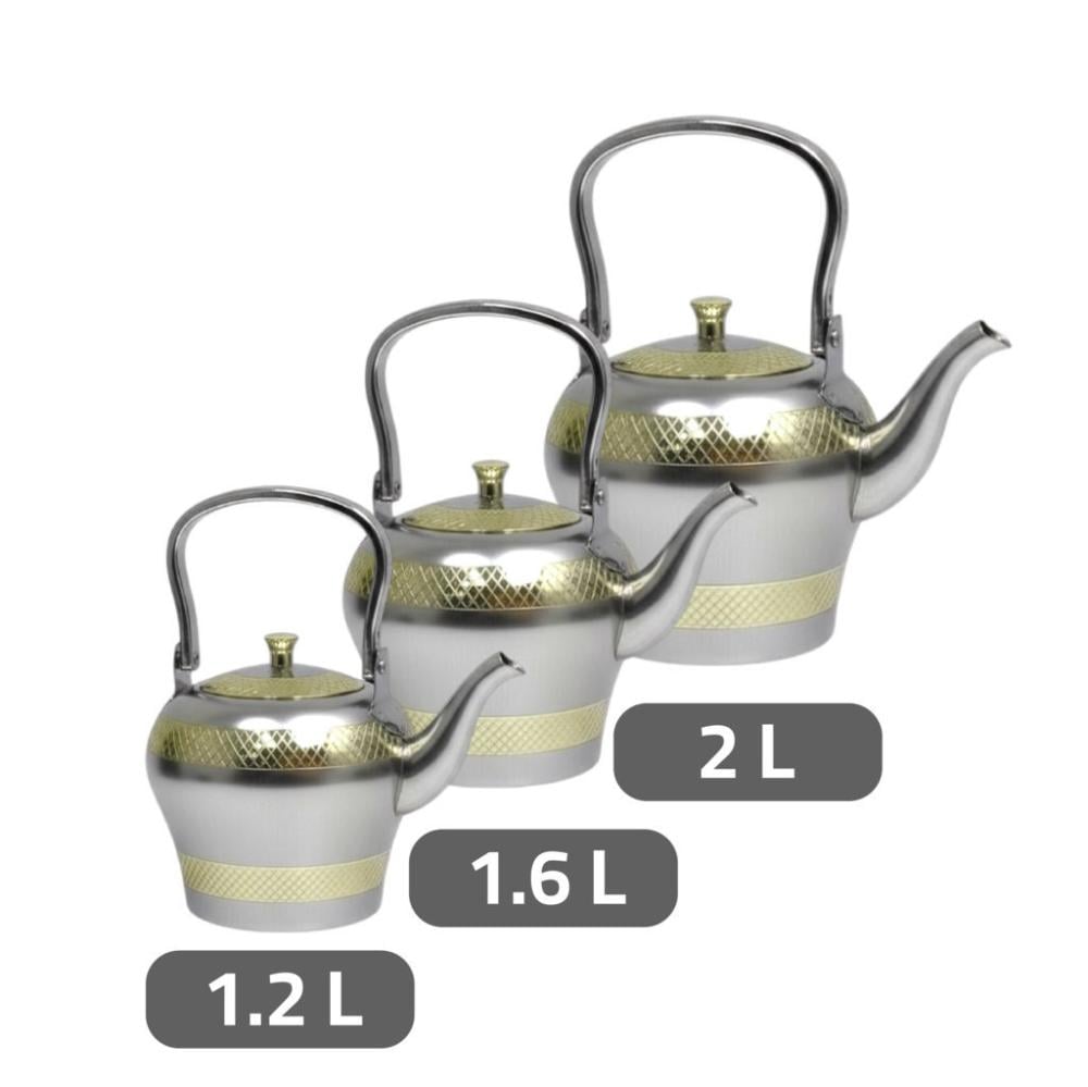 اقتني الآن اباريق شاهي ستانلس ستيل مزين بلون ذهبي وتمتّعي بتجربة تقديم راقية تضيف لمسة من الجمال والأصالة إلى منزلك.