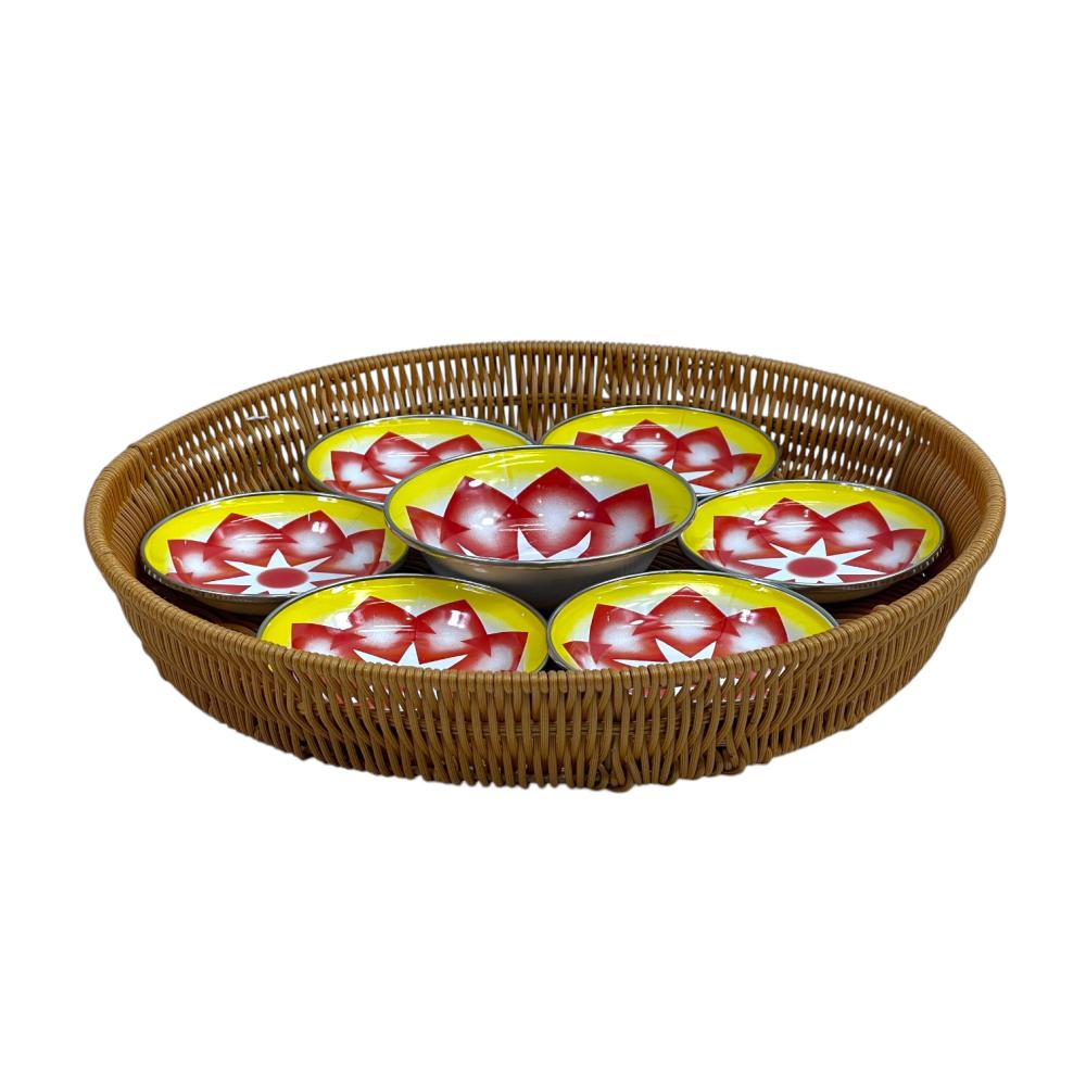 "طقم فطور طوفرية شكل خوص مع صحون من الغضار"