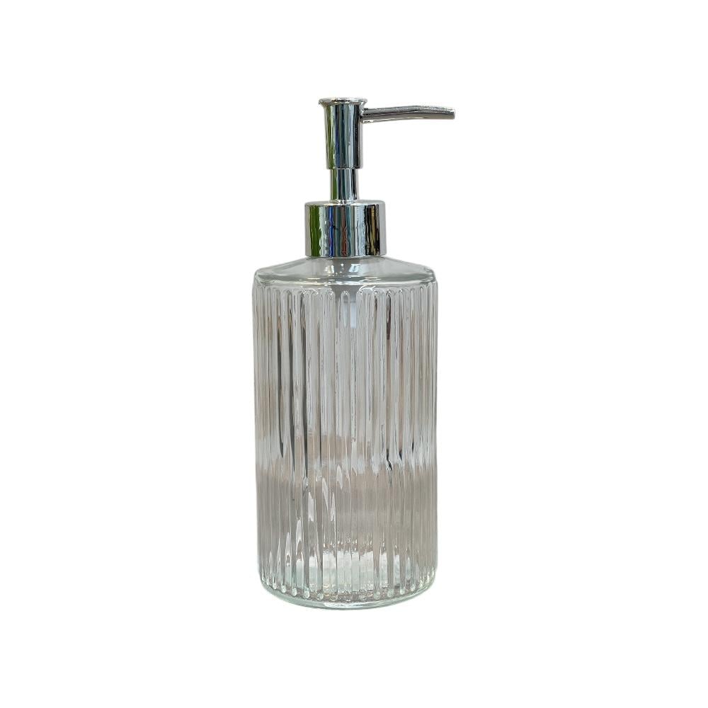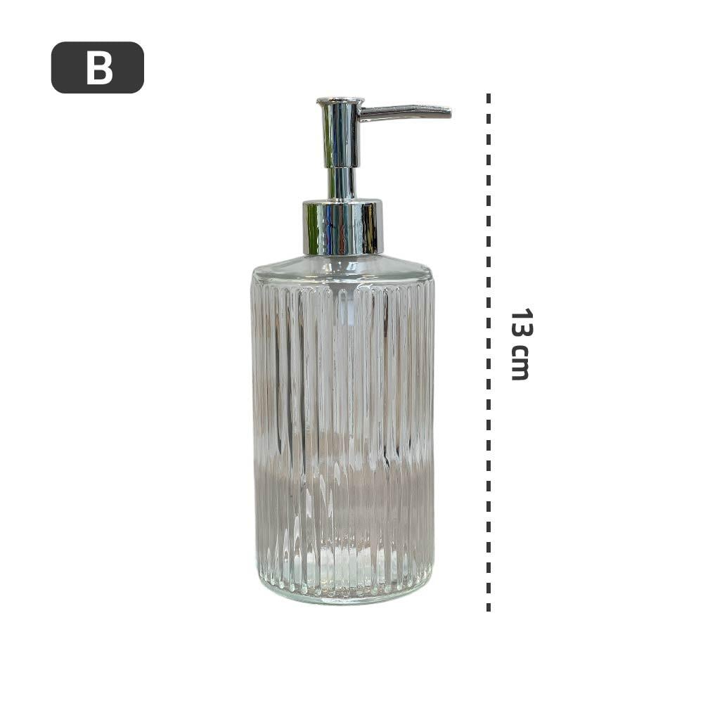 • موزع صابون زجاج مزود بمضخة لسهولة الاستخدام وضخ الكمية المطلوبة من الصابون السائل بطريقة مريحة ودقيقة.