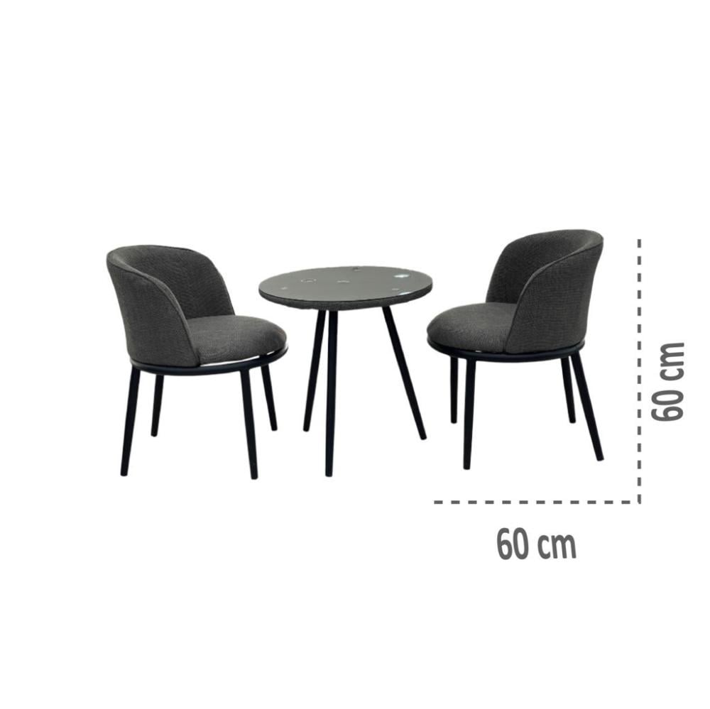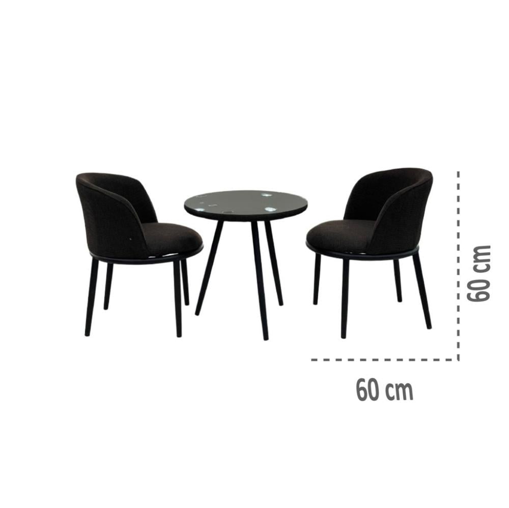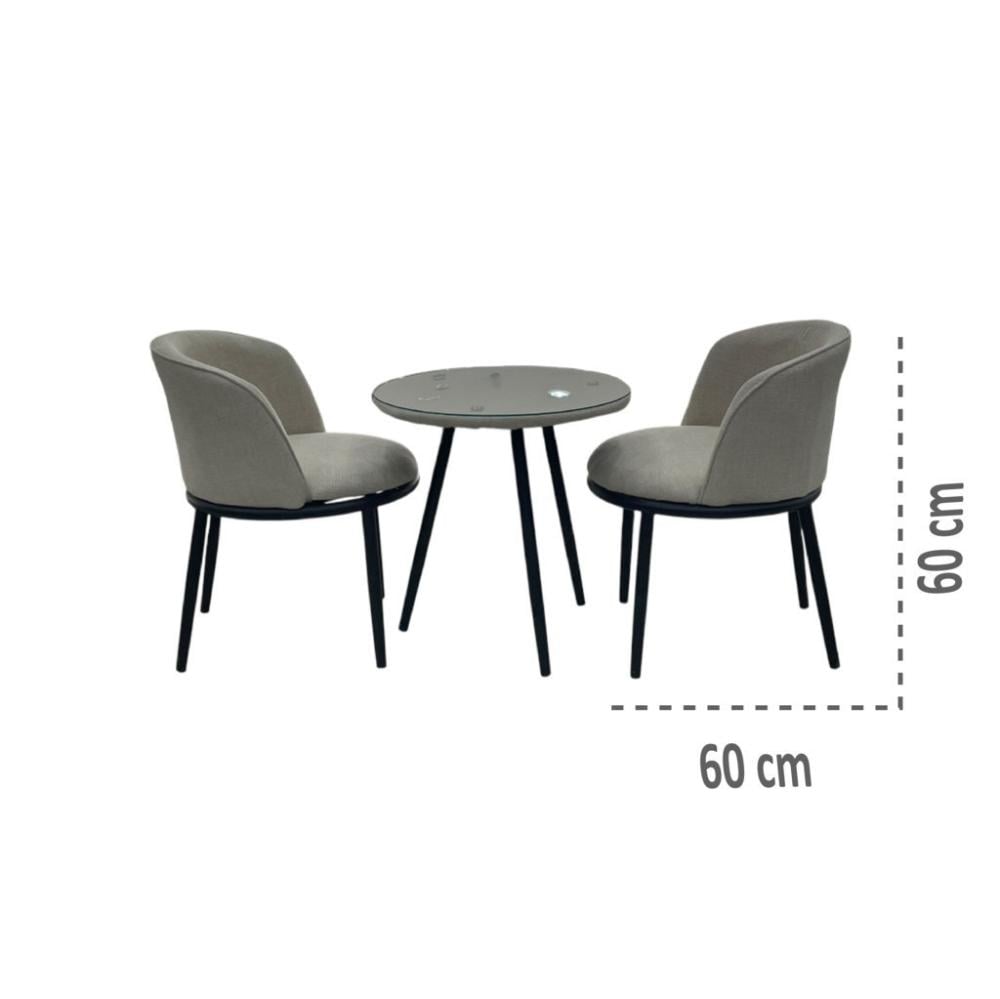 - المحتوى: طاولة مودرن متوسطة الحجم مع كرسيين مريحين بنفس الطابع