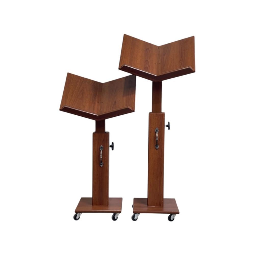 - يتمتع ستاند قرآن بإمكانية تعديل الارتفاع، مما يتيح لك وضعه في الوضع المثالي أثناء القراءة أو أثناء عرض المصحف الشريف. كما أن القاعدة مزودة بعجلات لسهولة الحركة.