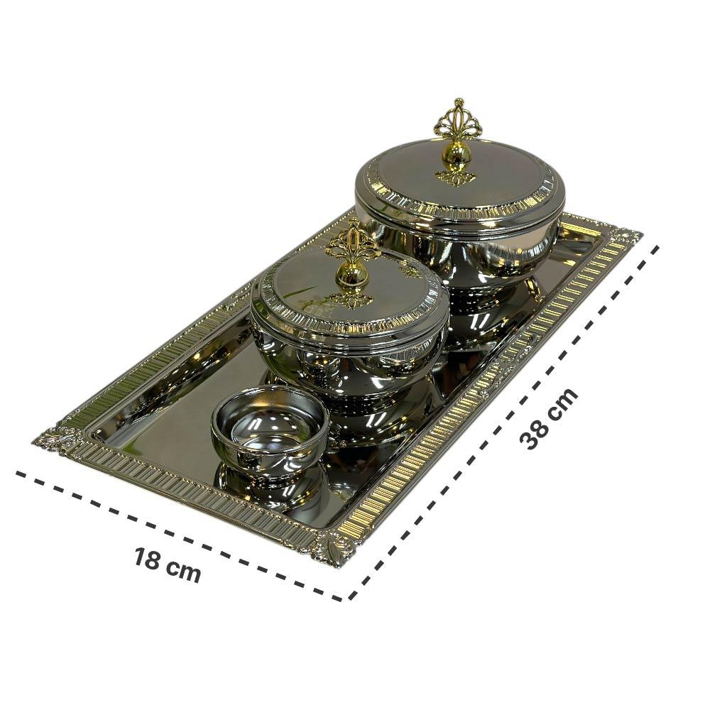 - الطقم يتكون من: طوفرية تقديم + تمرية بتصميم أنيق