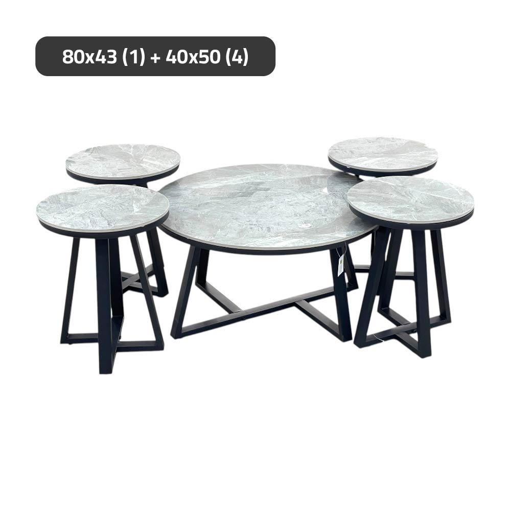 طقم مكون من 5 طاولات, طاولة كبيرة الحجم, و4 طاولات صغيرة.