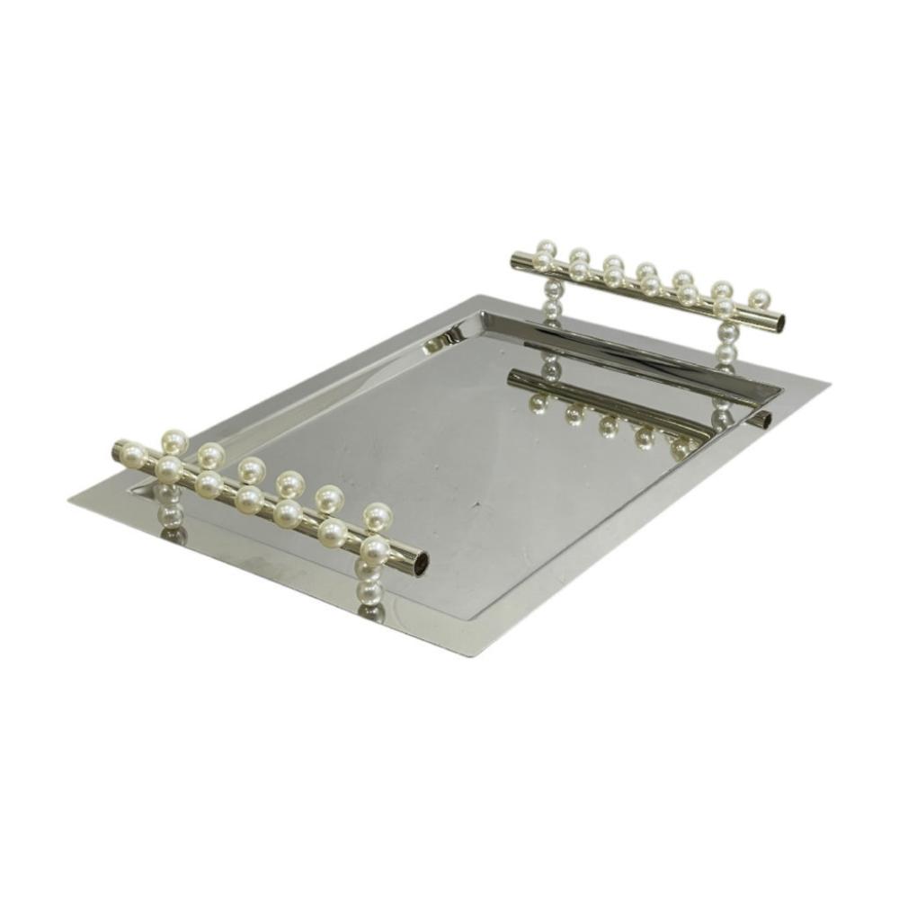 أضف لمسة من الفخامة والرقي إلى منزلك مع صينية تقديم فاخرة بمقابض مزينة باللؤلؤ، الخيار المثالي لعشاق ديكور الضيافة الأنيق. تجمع هذه الصينية بين التصميم العصري الكلاسيكي وطابع صواني التقديم الفاخرة المستخدمة في مجالس الضيافة الراقية وديكور الطاولة المميز، مما يجعلها قطعة تجمع بين الشكل العملي والديكور الفاخر في آن واحد.