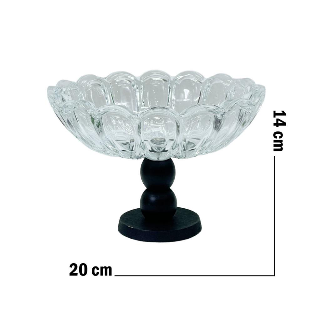 صحن تقديم زجاجي بقاعدة من الخشب هو قطعة فريدة من نوعها ستضفي لمسة من الديكور الطبيعي على مائدتك.