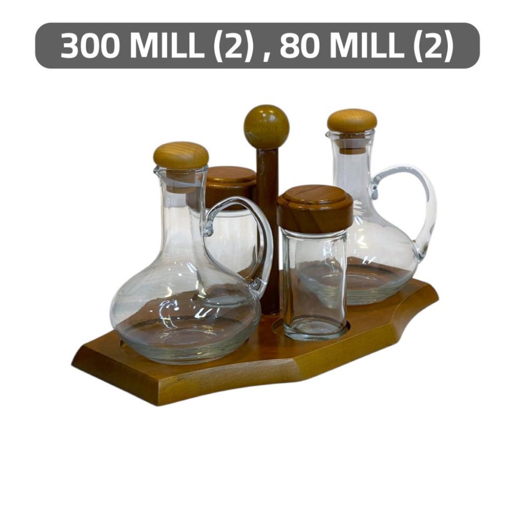 طقم ملاحة طعام مع مزيتة زجاج وقاعدة خشب