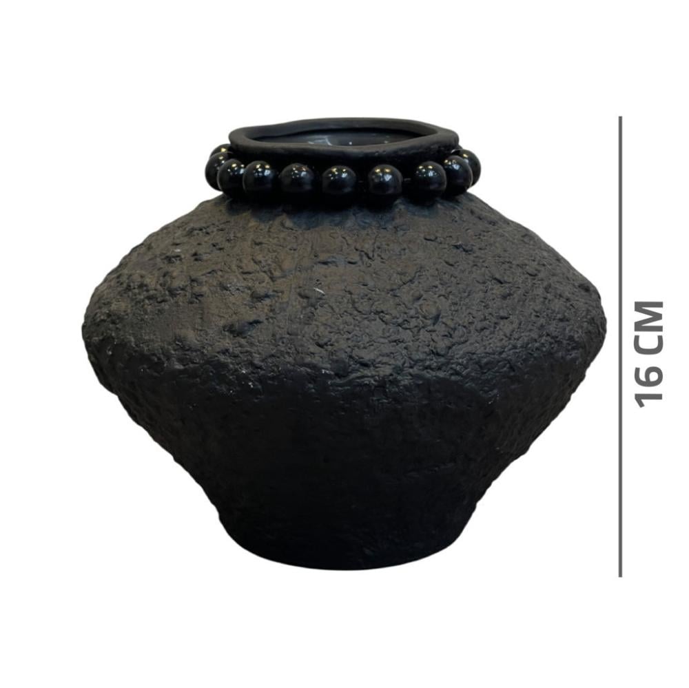 فازه صغيره سيراميك أسود مع سبحة