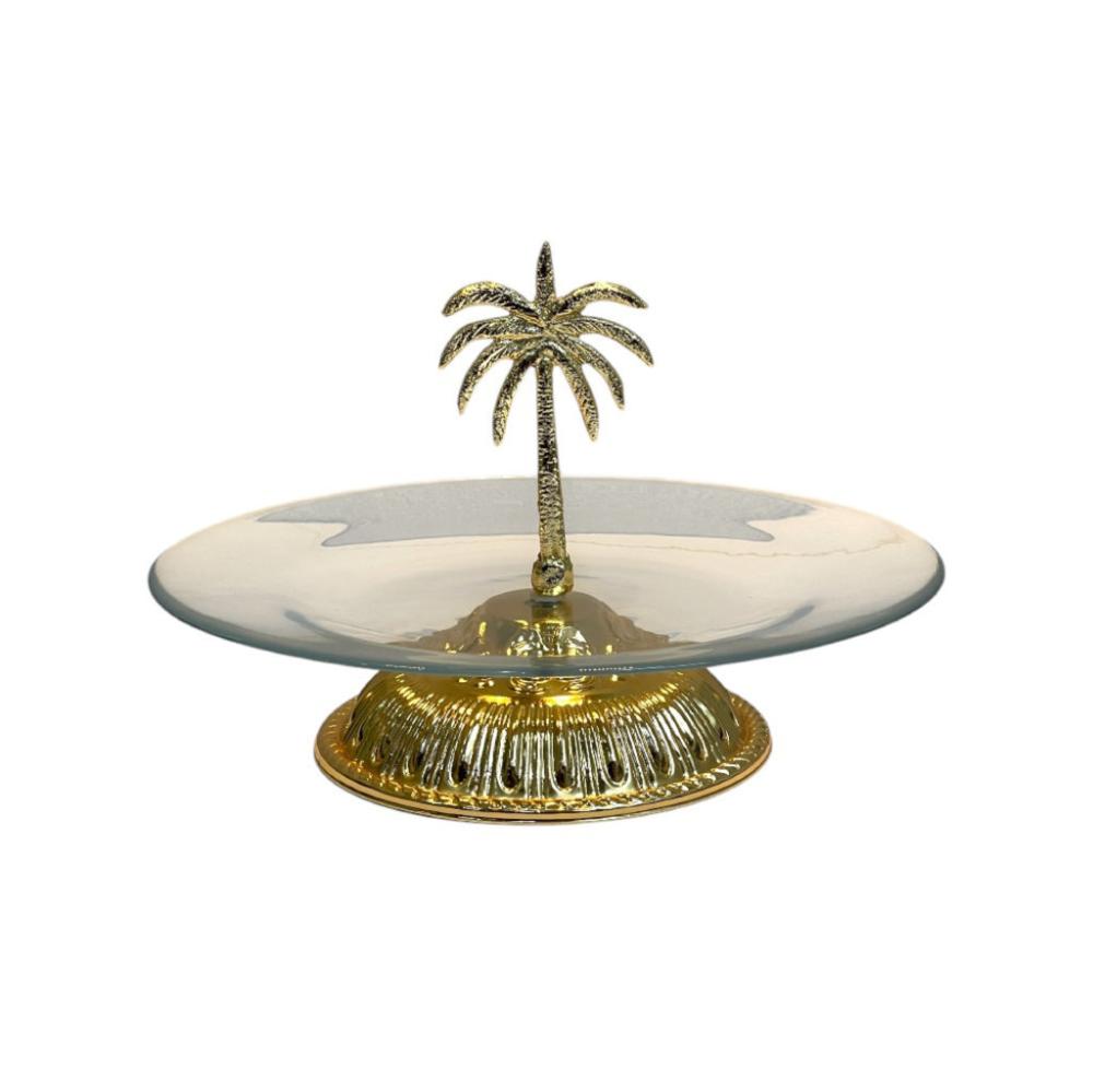 ستاند تقديم زجاجي بتصميم فاخر يجمع بين الأناقة والعملية، مزود بمقبض وسطي على شكل نخلة ليضفي لمسة راقية على ضيافتك.