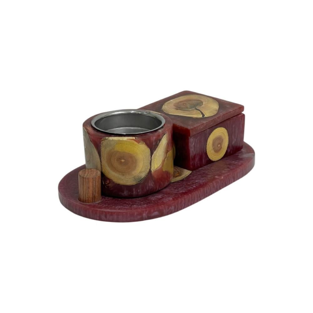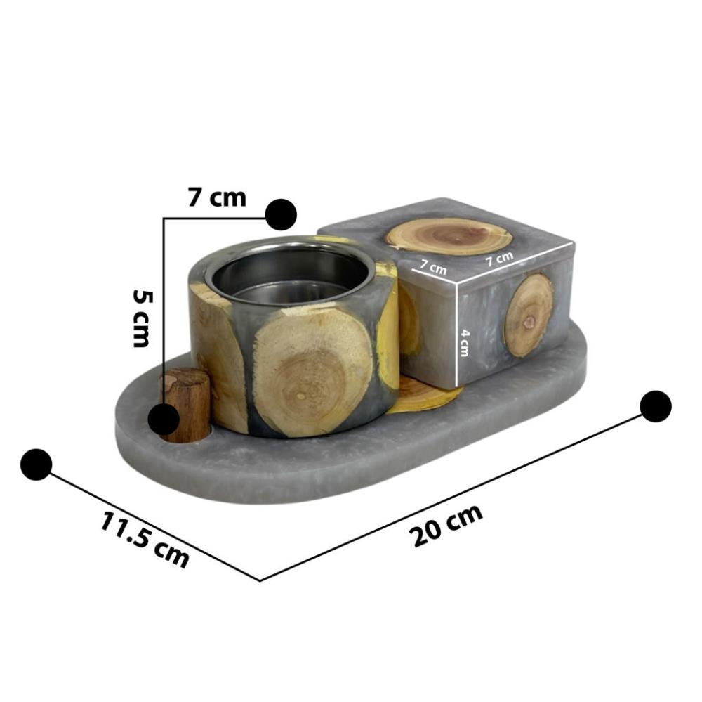 ✔ الصندوق: بأبعاد 7 سم × 7 سم × 4 سم، مثالي لحفظ البخور أو الفحم، مما يضيف لمسة تنظيمية للطقم.