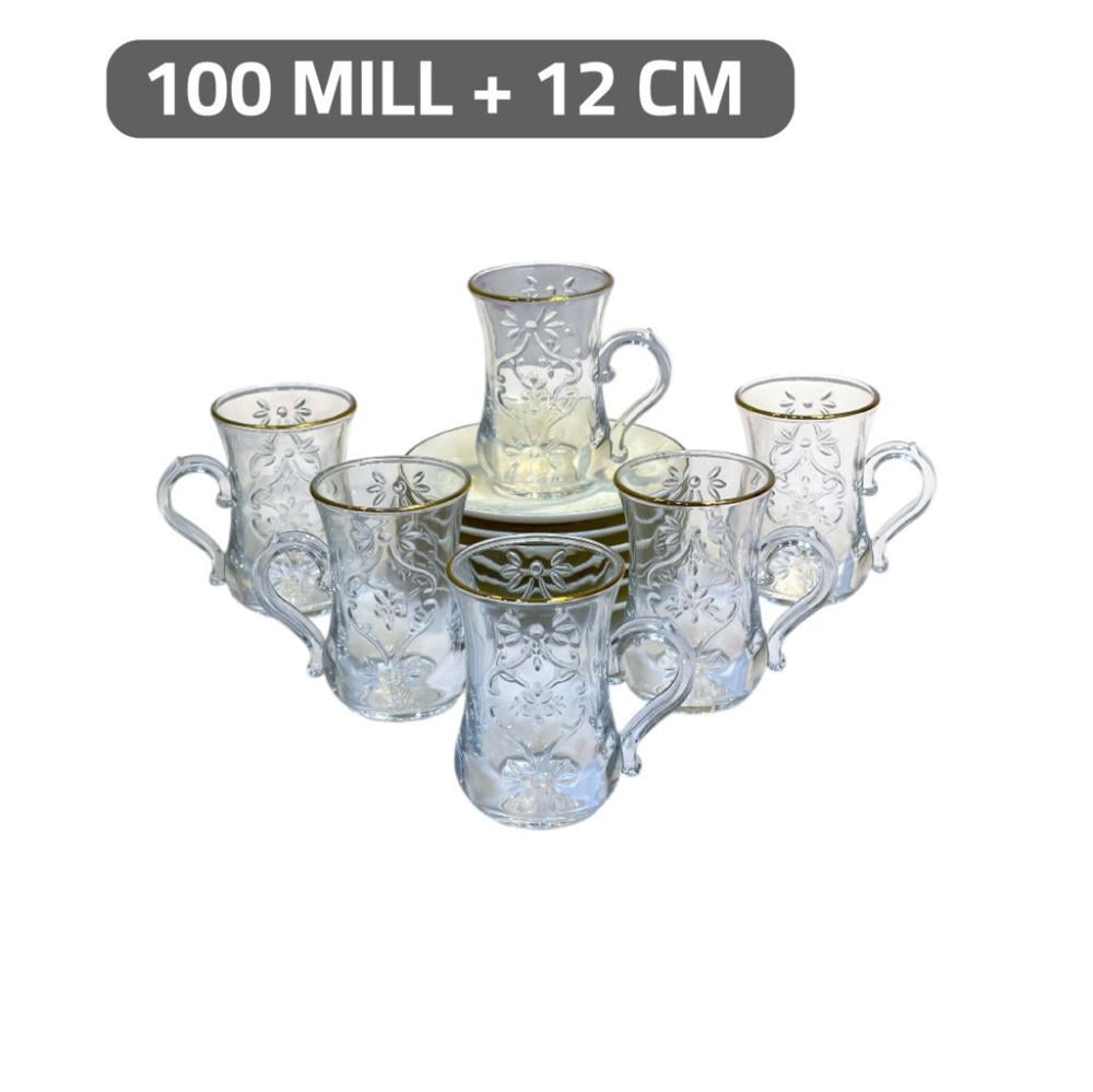اكواب شاي قزاز مع صحون 12 قطعة