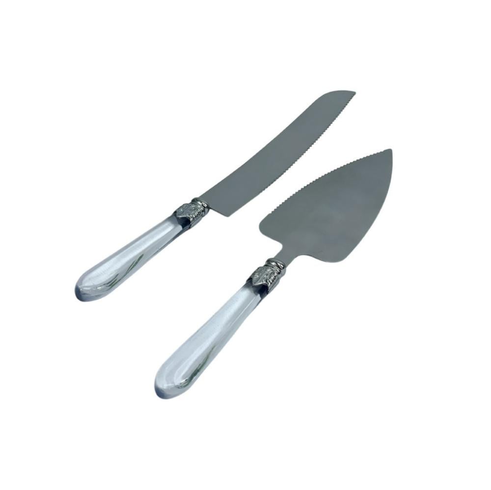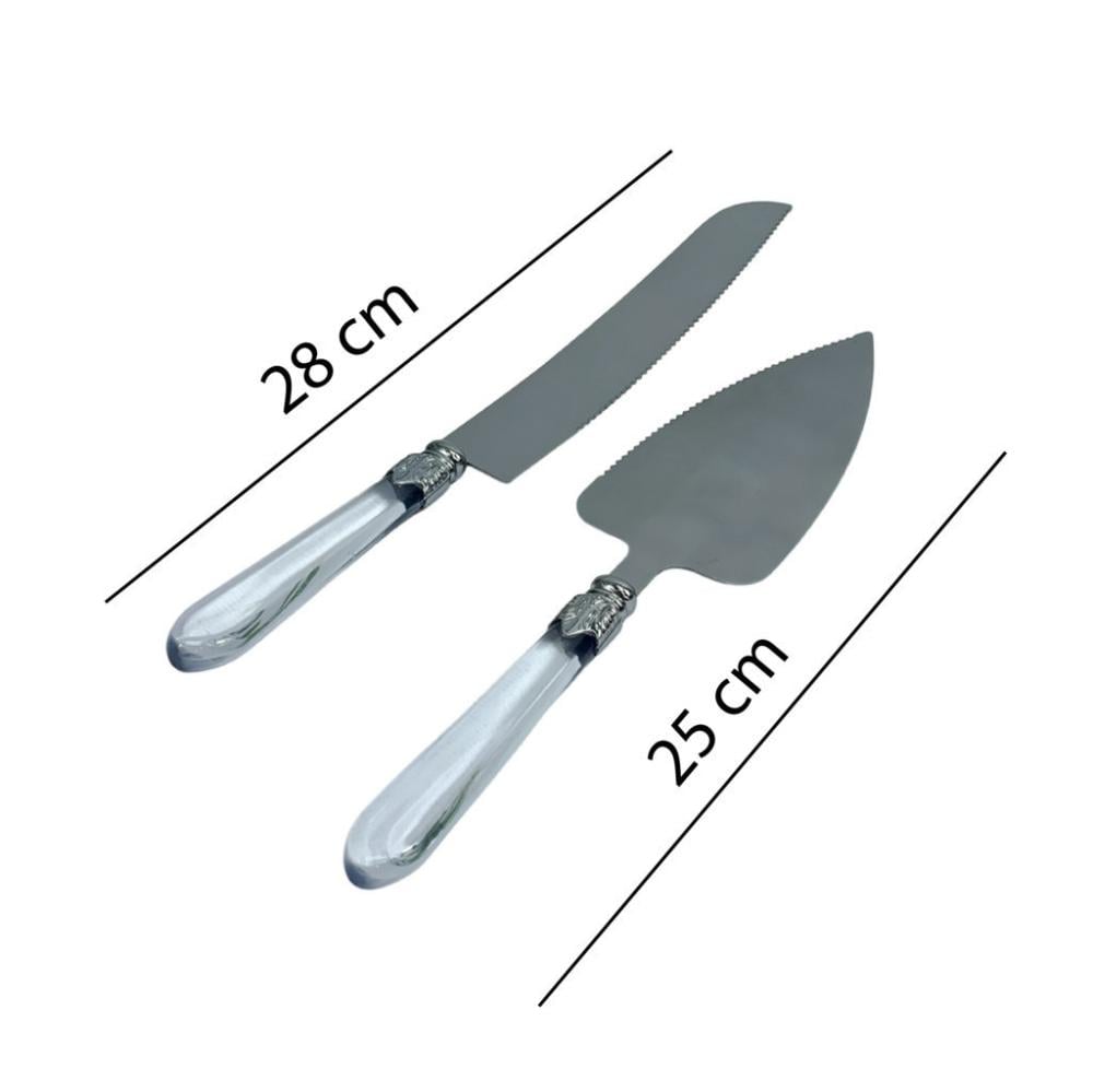 أضيفي لمسة من الفخامة لأدوات التقديم خاصتك باقتناء هذا الطقم. يتكون من سكين وملعقة تقديم كيك، مصنوع من مواد عالية الجودة بتفاصيل رقيقة على المقابض، هذا الطقم مثالي مختلف الحفلات والمناسبات ويعكس أناقة اختياراتك